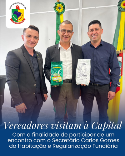 Os vereadores Cleonir e Fernando estiveram nesta semana em Porto Alegre para participar de um encontro com o Secretário Carlos Gomes, da Habitação e Regularização Fundiária, tratando de pautas e demandas de interesse do município.